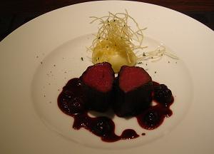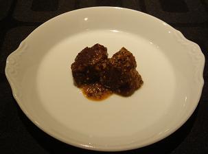 赤ワイン煮込みで、クランベリージャム(だっけ?)が添えてあります。