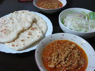 夕食は、ナンとキーマカレーです!!